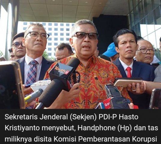 Jakarta, B-Oneindonesia – Komisi Pemberantasan Korupsi kembali memeriksa Sekretaris Jenderal Partai Demokrasi Indonesia atau PDIP Hasto Kristiyanto untuk menelusuri dugaan keterlibatannya dalam perkara dugaan suap yang menjerat kader partai Banteng, Harun Masiku, pada 2019 silam.