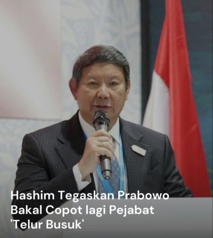 Jakarta (B-Oneindonesia.com) – Utusan Khusus Presiden untuk Energi dan Lingkungan Hashim Djojohadikusumo menegaskan, Presiden Prabowo Subianto akan kembali mengambil langkah tegas untuk membersihkan jajaran birokrasi dan sektor swasta dari ‘telur busuk’ yang menghambat laju pertumbuhan ekonomi.