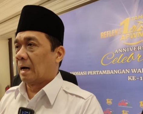 Wakil Menteri Desa & Pembangunan Daerah Tertinggal Ahmad Riza Patria di acara Refleksi 1 Tahun Asosiasi Pertambangan Warga Nusantara (APWU) di Jakarta, Kamis (29/5/2025).