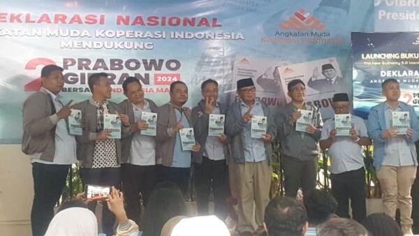 Jakarta, B-Oneindonesia – Angkatan Muda Koperasi Indonesia (AMKI) resmi mendeklarasikan dukungan terhadap pasangan calon presiden/wakil presiden nomor urut 02 Prabowo-Gibran, di Jalan Kartanegara, Jakarta Selatan, Jum’at (9/2/2025). Acara tersebut dihadiri oleh Tim Pakar Tim Kampanye Nasional (TKN) Prabowo-Gibran, Burhanudin Abdulah dan Budiman Sudjatmiko, serta pengurus dan anggota AMKI.