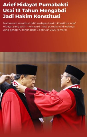 Prof Arief Hidayat memasuki masa purnatugas pada 3 Februari 2026 saat usianya genap 70 tahun. Ketentuan mengenai batas usia pensiun hakim konstitusi diatur dalam Pasal 23 Undang-Undang Nomor 7 Tahun 2020 tentang Mahkamah Konstitusi.
