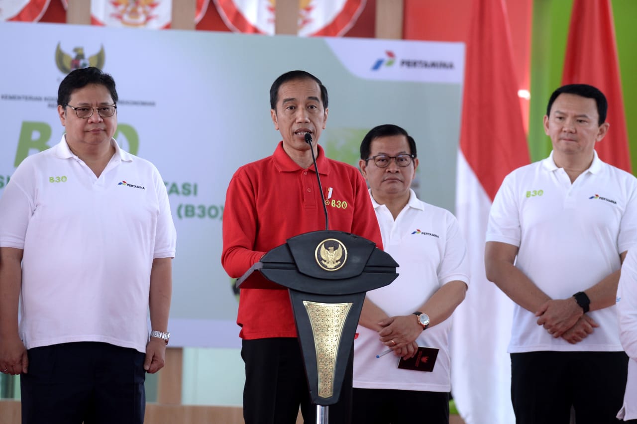 Saat memberikan sambutan, Presiden menyebut bahwa dirinya memantau program implementasi B30 secara terus menerus dari hari ke hari. Ia pun menilai bahwa program pencampuran biodiesel dengan bahan bakar nabati ini tidak cukup berhenti di B30 saja.