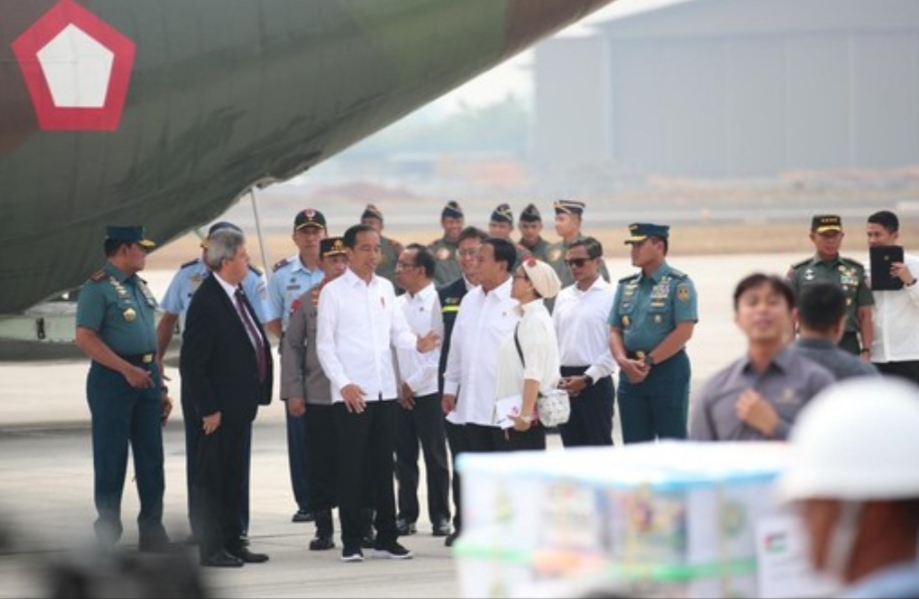 Menhan Prabowo Subianto mendampingi Presiden Jokowi melepas bantuan kemanusiaan Indonesia sebanyak 51,5 ton untuk rakyat Palestina di Lanud Halim Perdanakusuma, Sabtu (04/11/2023)