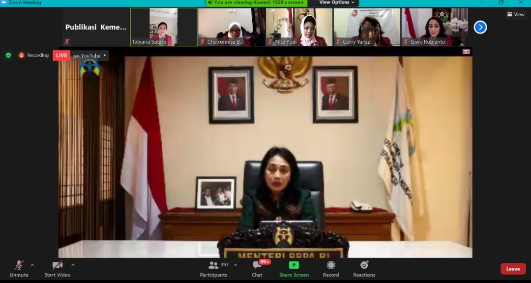 “Pilkada merupakan kesempatan emas bagi kita semua untuk memperjuangkan keterwakilan perempuan di daerah. Perempuan sebaiknya mulai terlibat dalam tiap-tiap Pilkada, mulai dari menuangkan agenda pembangunan perempuan dalam penyusunan visi-misi calon kepala daerah, melakukan sosialisasi visi-misi melalui berbagai ruang, mengaktifkan berbagai jaringan dukungan, hingga ikut mengawal suara yang diperoleh oleh calon tersebut hingga penetapan definitif kepala daerah oleh Komisi Pemilihan Umum Daerah (KPUD). Hal ini penting untuk menandakan bahwa perempuan bukan hanya menunggu agar pemerintah memberi perhatian, tetapi perempuan aktif berpartisipasi dalam pemerintahan,” ujar Menteri PPPA, Bintang Puspayoga pada webinar Peluang Perempuan dalam Pilkada Serentak 2020 yang diselenggarakan oleh Kongres Wanita Indonesia (KOWANI) (20/10).