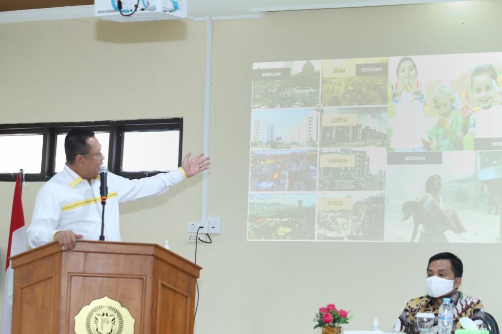 “Pembekalan materi mengenai ideologi dan nasionalisme pada awal masa perkuliahan juga bermakna strategis. Menunjukan pengenalan kehidupan kampus tidak hanya sekadar proses adaptasi mahasiswa baru terhadap lingkungan pendidikan, tetapi juga membekali mereka dengan dasar-dasar pembentukan karakter kebangsaan,” ujar Bamsoet saat menyampaikan Sosialisasi Empat Pilar MPR RI, di UNPERBA, Purbalingga, Jawa Tengah, Rabu (7/10/20).