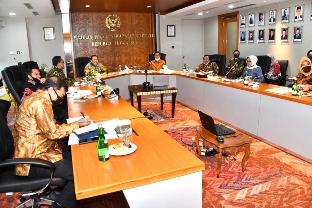 Jakarta, b-Oneindonesia – Pimpinan MPR RI dan Pimpinan DPD RI sepakat bahwa Penyebaran Covid-19 yang semakin masif berdampak pada hampir seluruh sendi kehidupan. Selain memberikan pengaruh yang sangat besar pada bidang ekonomi seperti banyaknya perusahaan yang menutup usahanya sehingga menimbulkan gelombang PHK yang sangat besar, hilang atau berkurangnya pendapatan masyarakat yang secara langsung terpapar oleh Covid-19; penyebaran Covid-19 ini juga telah menyebabkan lembaga-lembaga negara tidak dapat bekerja secara optimal.