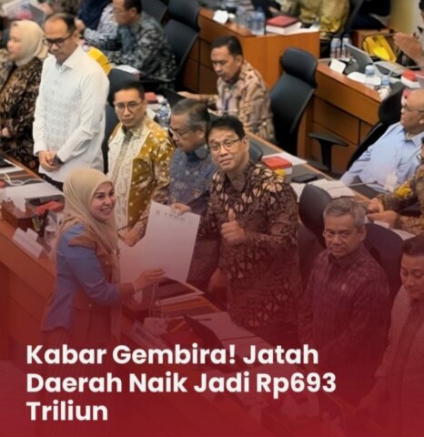 Jakarta(B-Oneindonesia.com)-Pemerintah dan Badan Anggaran (Banggar) DPR RI menyepakati penambahan anggaran untuk transfer ke daerah (TKD) dalam Anggaran Pendapatan dan Belanja Negara (APBN) 2026. Anggaran ditambah dari sebelumnya Rp 650 triliun menjadi Rp 693 triliun.