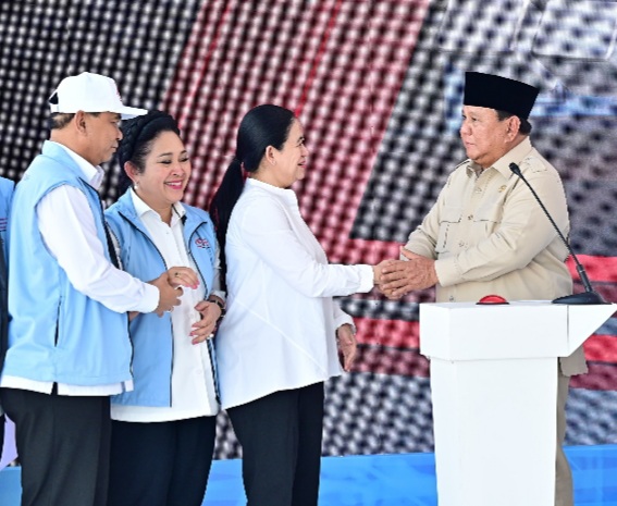 Kemudian, Puan memasuki arena acara dan langsung menempati kursi di barisan depan bersama para pejabat tinggi negara. Prabowo yang juga hadir dalam acara peluncuran tersebut tampak menyapa dan menyalami Puan sebelum acara dimulai.