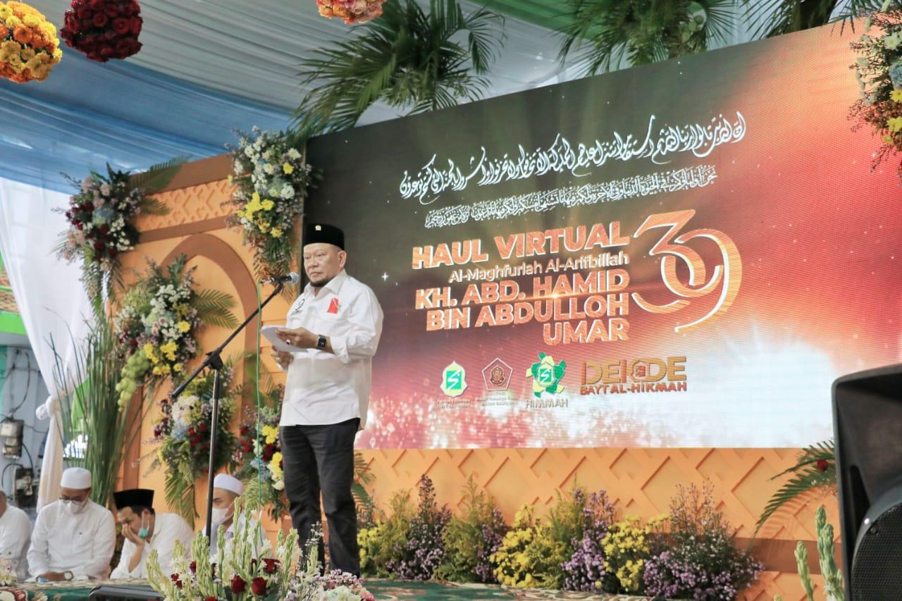 LaNyalla hadir di Ponpes yang diasuh KH Idris Hamid itu dalam rangka mengikuti peringatan Maulid Nabi dan Haul ke-39 Almaghfurlah KH Abdul Hamid bin Abdulloh Umar dan Haul ke-30 Almaghfurlaha Ibu Nyai Hj. Nafisah binti KH Achmad Qusyairi.