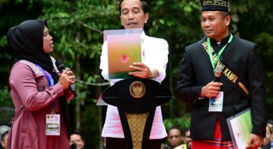 Pekanbaru-b-oneindonesia–Presiden Joko Widodo menyerahkan 41 Surat Keputusan (SK) Perhutanan Sosial untuk 20.890